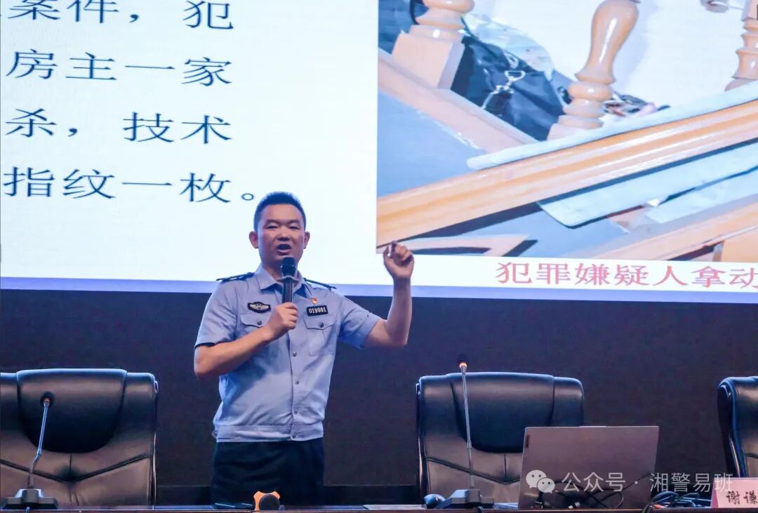 为进一步深实战化教学,提升刑技学子专业素养,5月13日,刑事科学技术系特别邀请宁乡市公安局花明楼派出所所长谢谦舜来校开展“夯实基础,拓展思维——浅析新形势下刑事技术专业人才的成长”专题讲座。谢谦舜扎根刑事科学技术一线14年,先后荣获全省破案能手、全省刑事科学技术之星等荣誉,讲座由系科研负责人陈瑶清主持,学生大队教导员周丹出席讲座,22、23、24级同学到场。